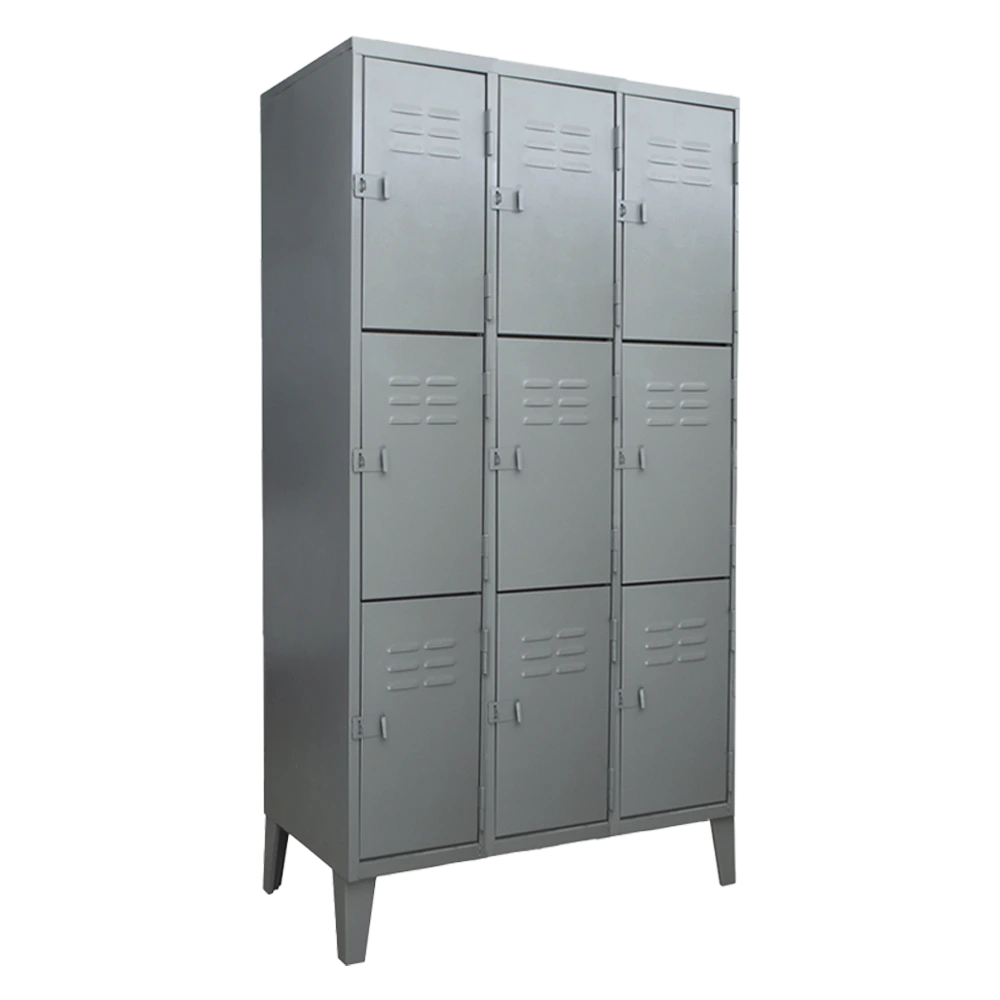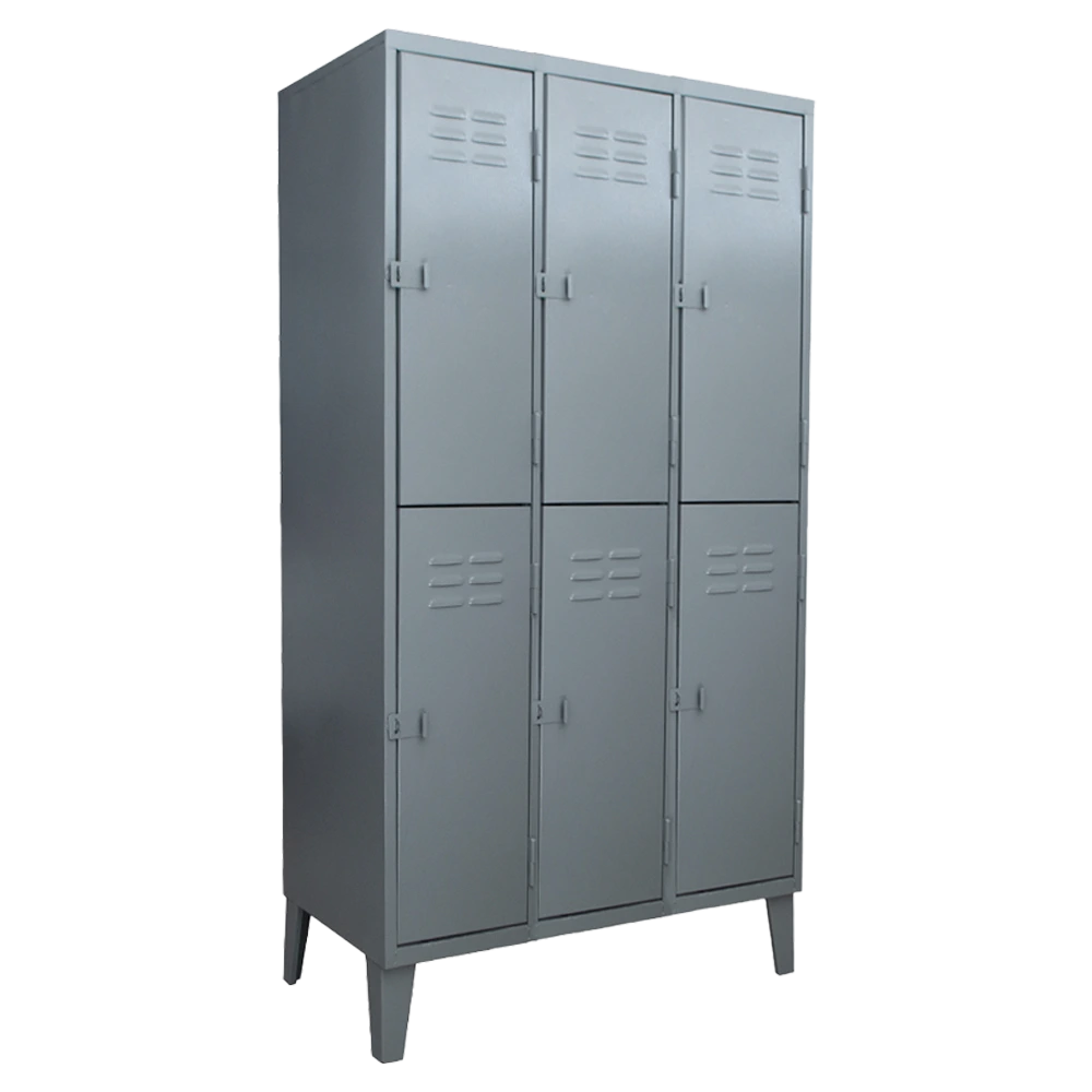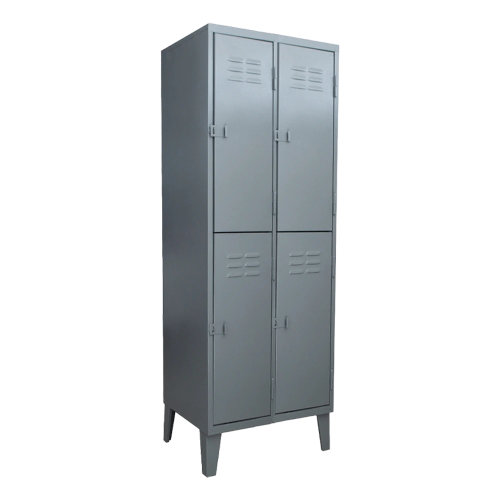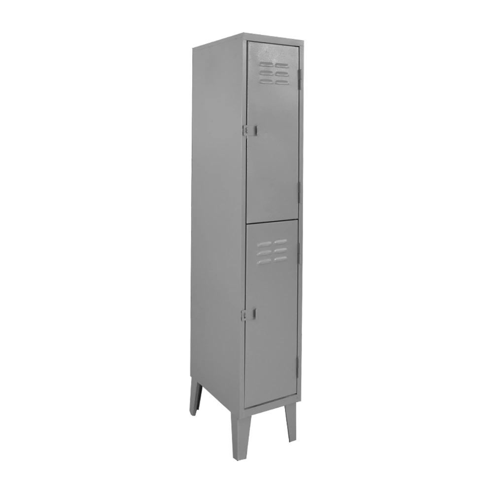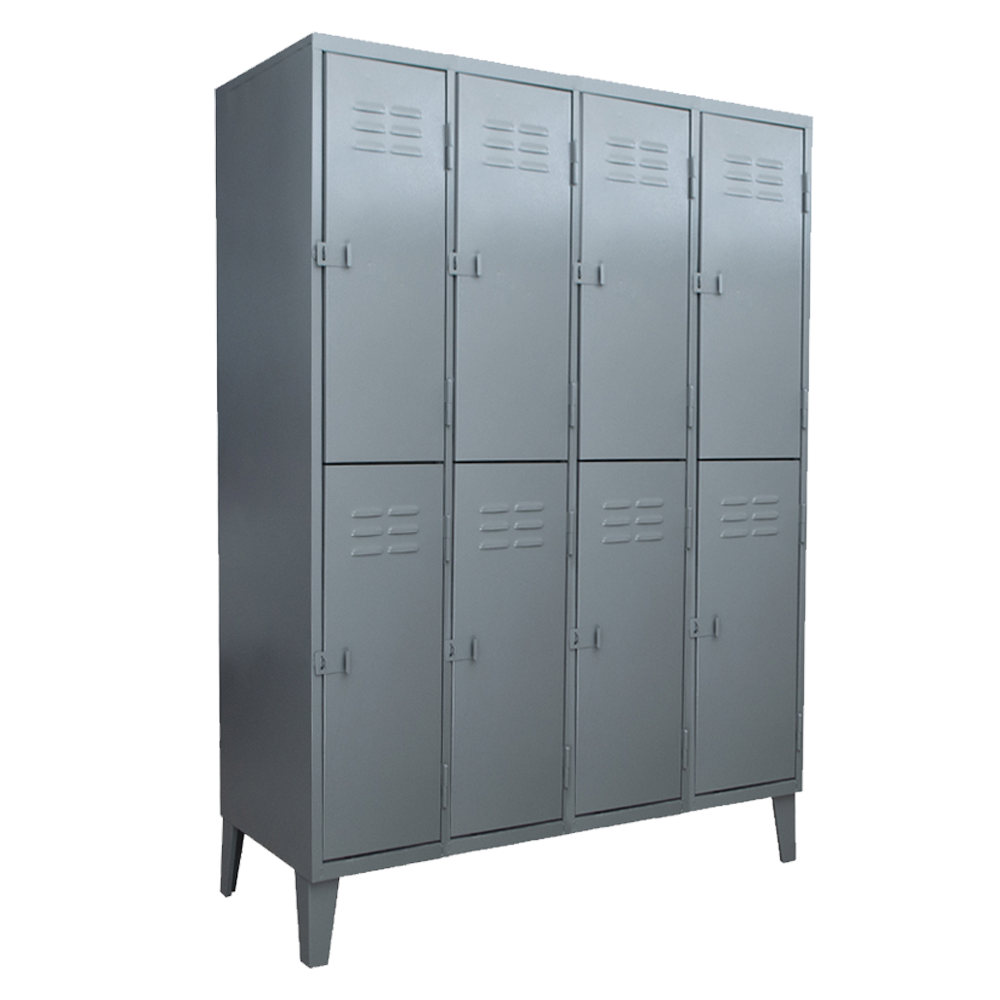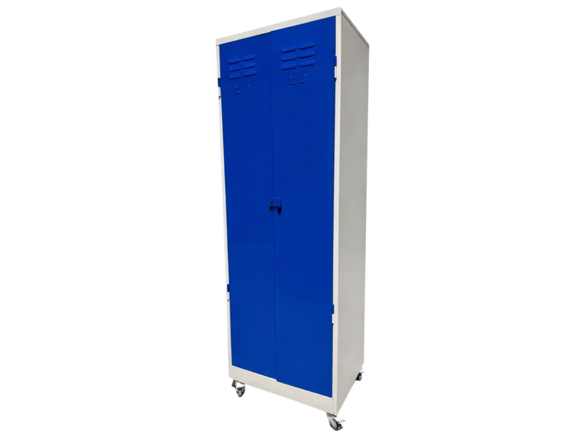 DestacadoEstructura: Acero SAE 1010 Espesor estructura: 0,6 mm Espesor puertas: 0,6 mm Color cuerpo: Gris Color puertas: Personalizado Sistema de cierre: Porta candado con tirador Ventilación: Celosía de ventilación en puertas Base: Patas metálicas elevadas Bandeja interior: No incluye Colgador: No incluye Sistema de pintura: Electrostática en polvo, previo decapado y fosfatado, lo que permite una mayor resistencia a la corrosión. Tipo de armado: Soldadura MIG