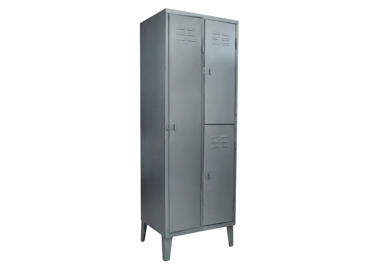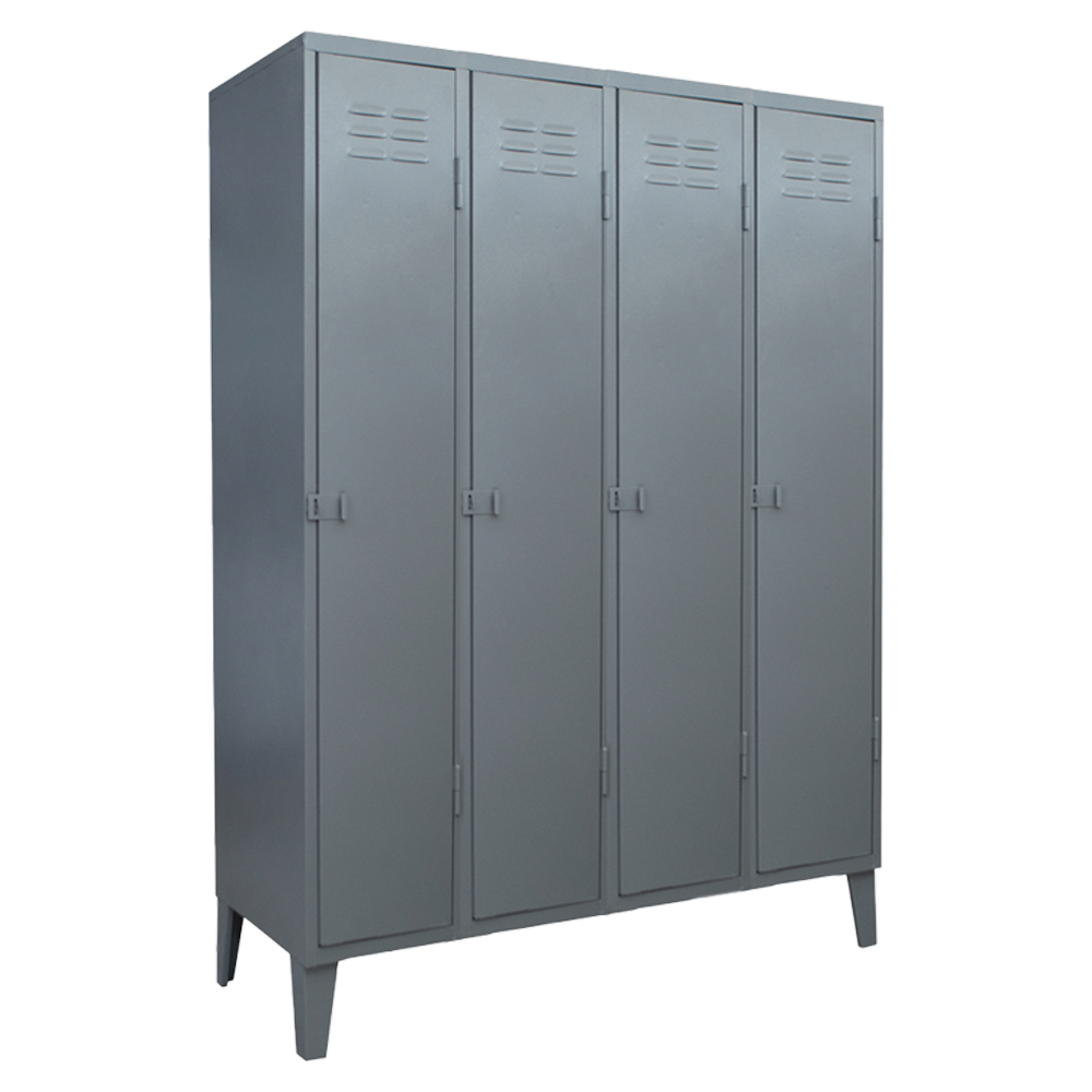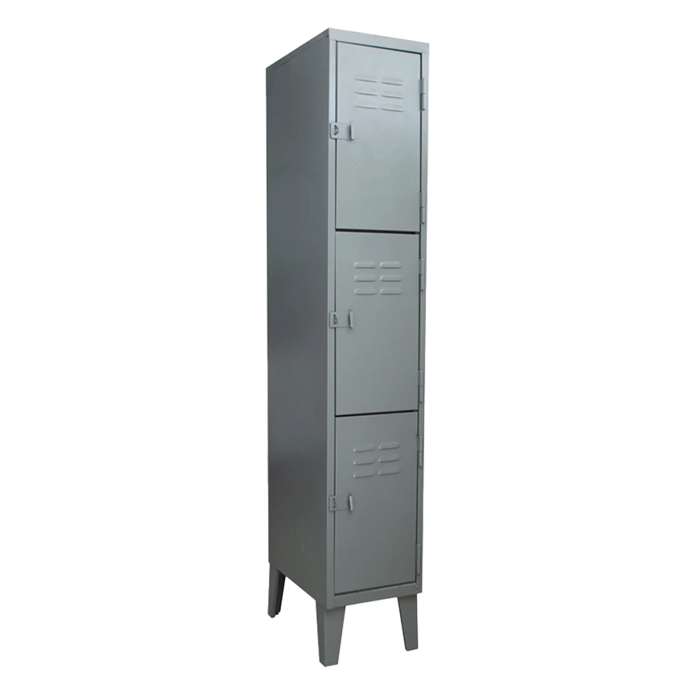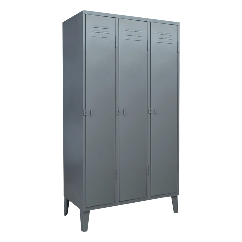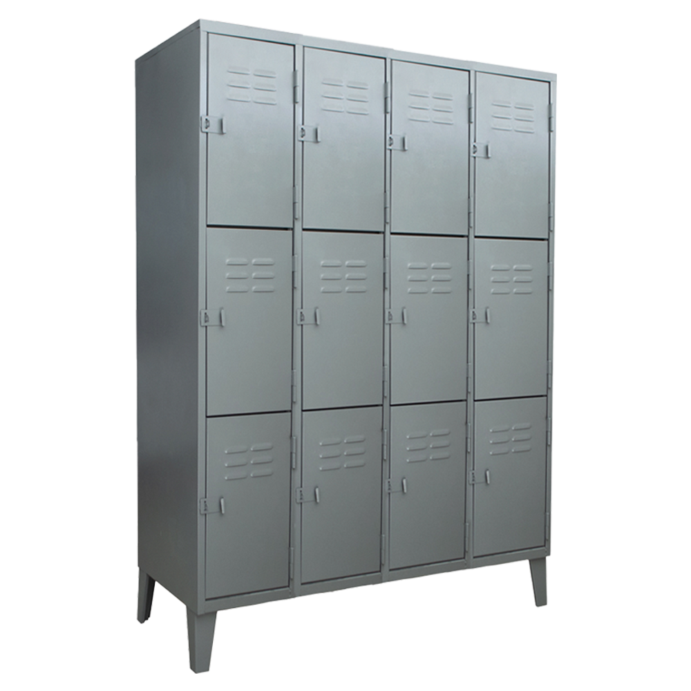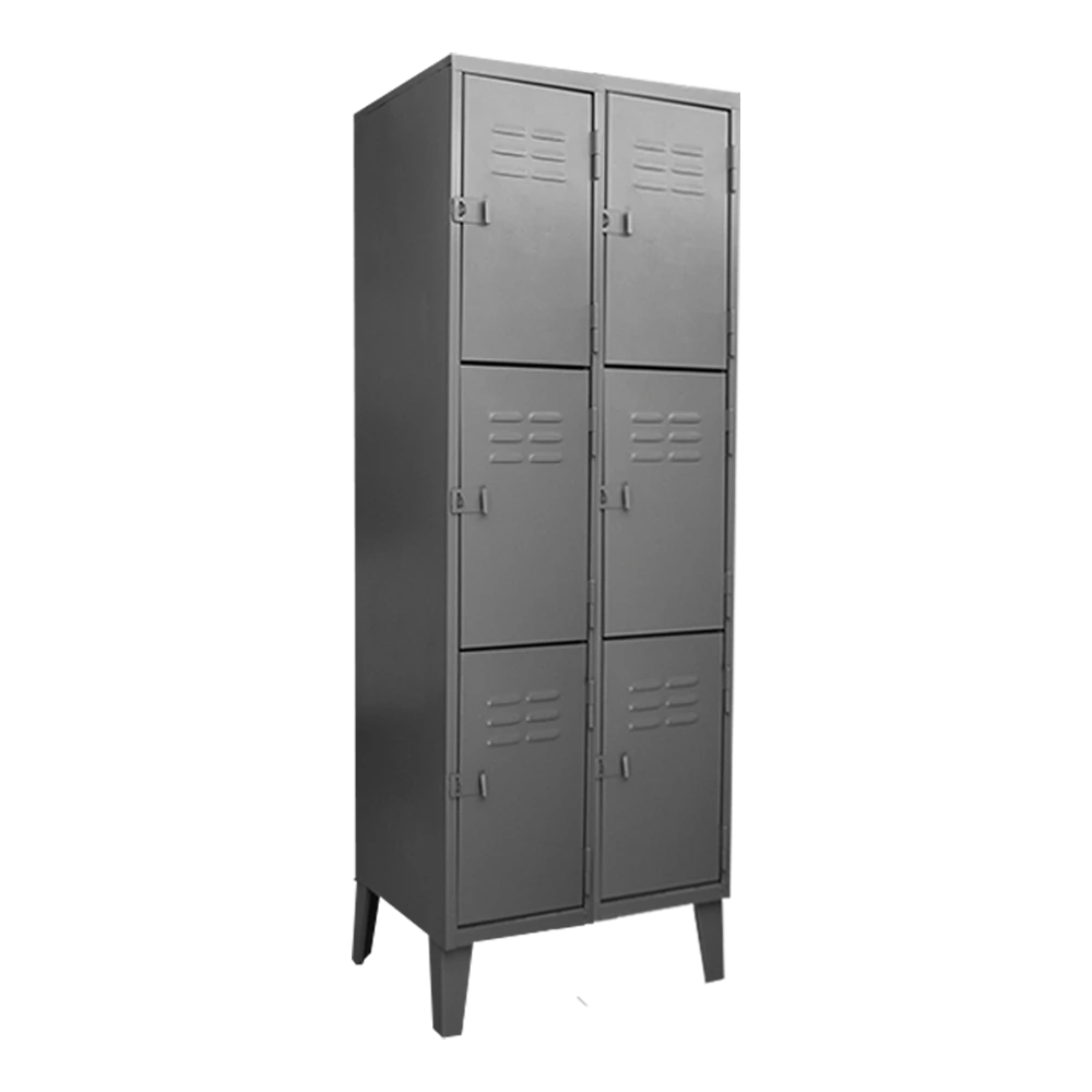 DestacadoEstructura: Acero SAE 1010 Espesor estructura: 0,6 mm Espesor puertas: 0,6 mm Color cuerpo: Gris Color puertas: Personalizado Sistema de cierre: Porta candado con tirador Ventilación: Celosía de ventilación en puertas Base: Patas metálicas elevadas Bandeja interior: No incluye Colgador: No incluye Sistema de pintura: Electrostática en polvo, previo decapado y fosfatado, lo que permite una mayor resistencia a la corrosión. Tipo de armado: Soldadura MIG